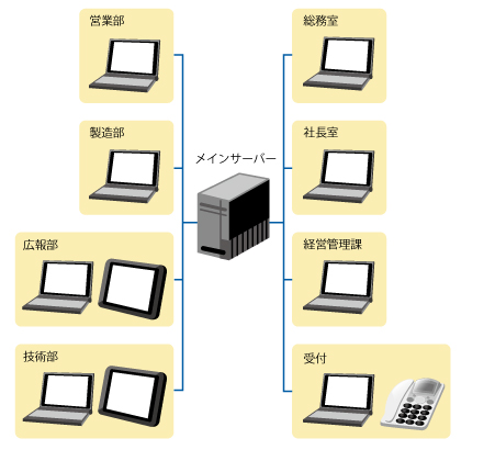 社内イントラネットワーク環境の構築・保守も行っております。 パソコンのネットワーク共有設定インターネット接続・無線LAN設定やプリンター共有設定などパソコンに関することならおまかせください。